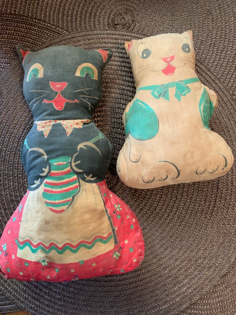 Does anyone know what they are? These two adorable kittens have been at my Grand Parents house since I’ve been alive. They are printed stuffed cats. Not sure if these were sold already made, sold as outlines that you stuffed and sewed, or were folk art. Open to any information about them. Thank you.