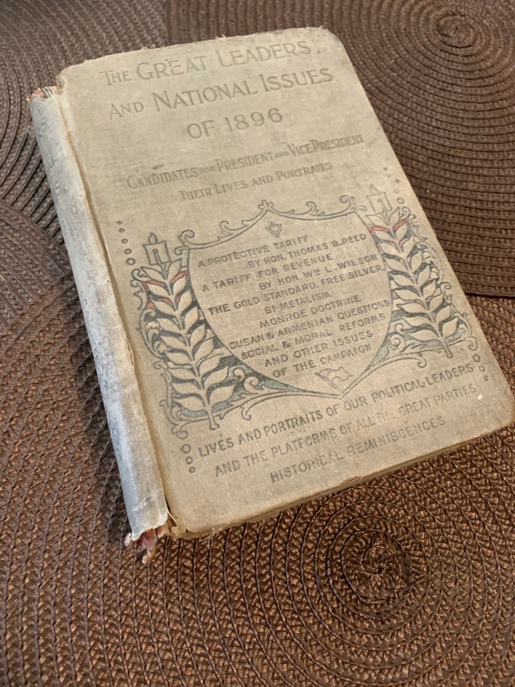 This book featured in the above picture as Tidbit 8 is an example of the campaign literature put into print to explain the election to voters of the day. It described past elections, presidents and modern political leaders of 1896. The book also explained the platforms of each party and how they were different. It was published by J.C. Winston & Company on January 1, 1896 and is 644 pages in length.