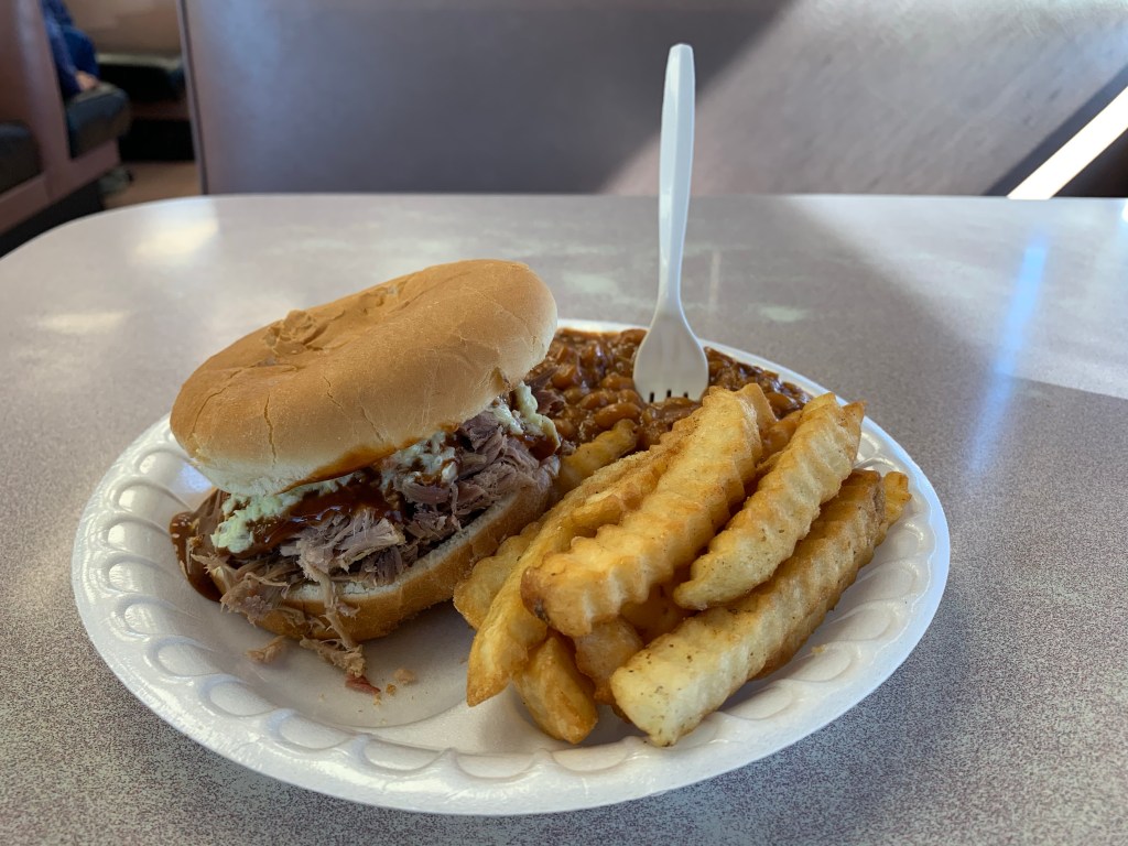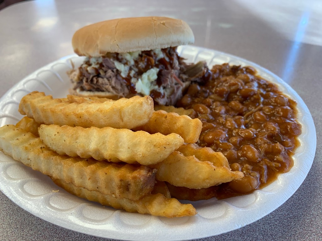 I love the barbecue sandwich with slaw. The meal has two sides. Best sweet tea around.
